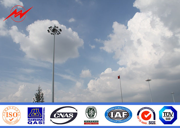 освещение спортивного центра полюса рангоута Q345 50m высокое с поднимаясь системой. Высокий полюс рангоута проектирован для применений где надежность и легкость обслуживания основное рассмотрение. Высокие осветительные установки рангоута превосходны для освещающих больших напольных зон как: